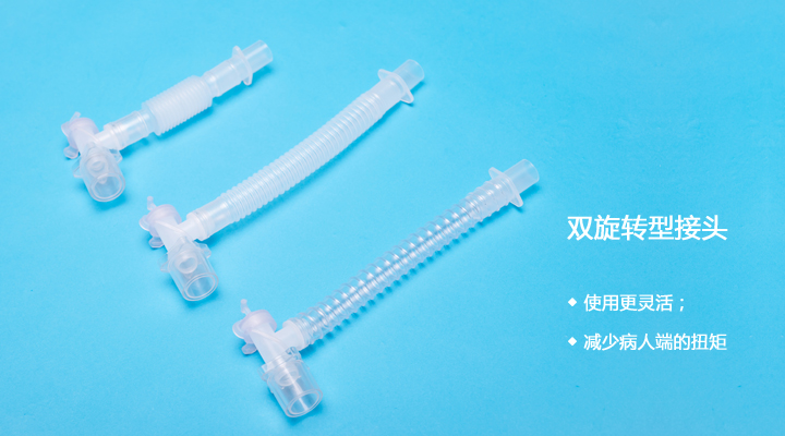 3、双旋转型接头,使用更灵活,减少病人端的扭矩。